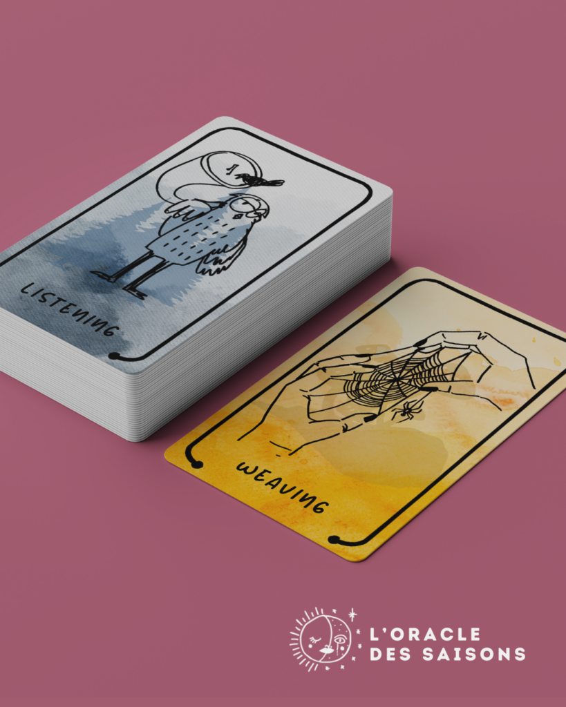 L’Oracle des Saisons est un jeu de 52 cartes conçu pour t’aider à ralentir, écouter et te réaccorder à ton rythme naturel.